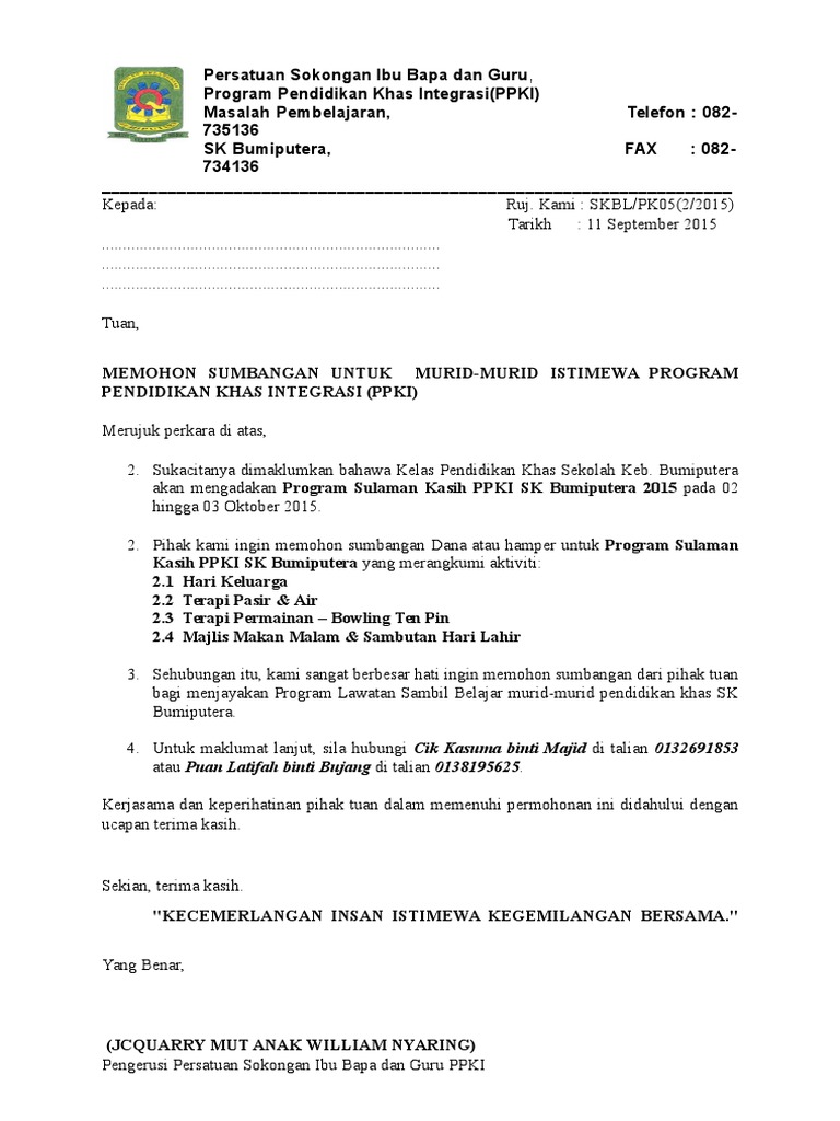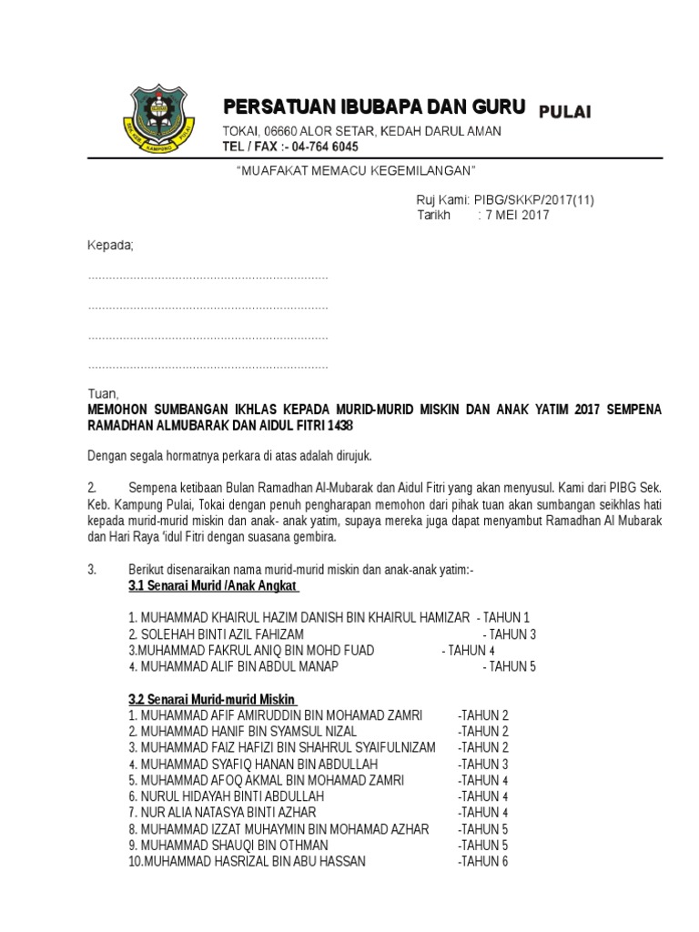 Surat Permohonan Sumbangan Pibg Fasranswer